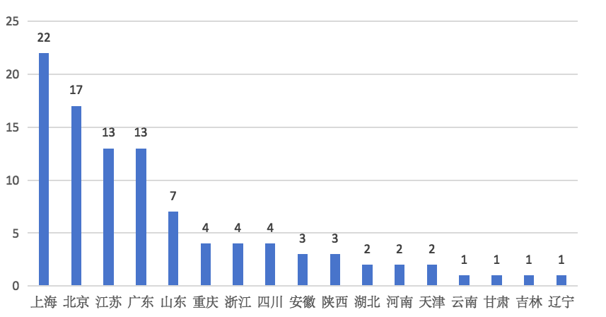 上榜学校最多的区域是上海,上榜学校达22所,占总上榜学校数量比重近四分之一。上榜学校超过十所的区域有上海、北京、江苏和广东,上榜学校总量达到65所,超过去年的63所。