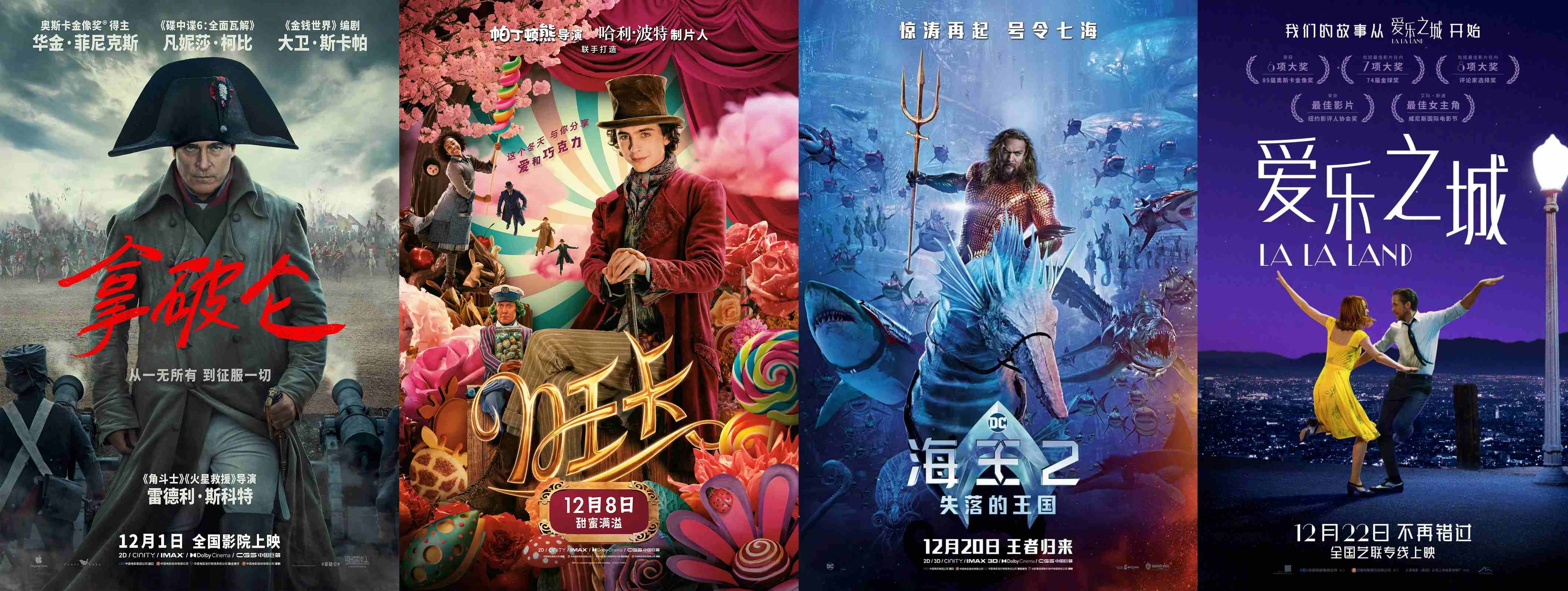 在即将到来的12月,好莱坞新片《拿破仑》《旺卡》《海王2:失落的王国》都将相继登陆内地,《爱乐之城》也定于12月22日重映。当前,《海王2:失落的王国》在猫眼专业版想看数为8.7万,但内部试映口碑不佳或许难使其成为好莱坞系列电影续集的“翻身之作”。已于今年10月13日北美上映的纪录片《泰勒·斯威夫特:时代巡回演唱会》当前烂番茄新鲜度99%,CinemaScore评级A+,如能于年末在内地上映,或将实现今年好莱坞类型片的完美收官。