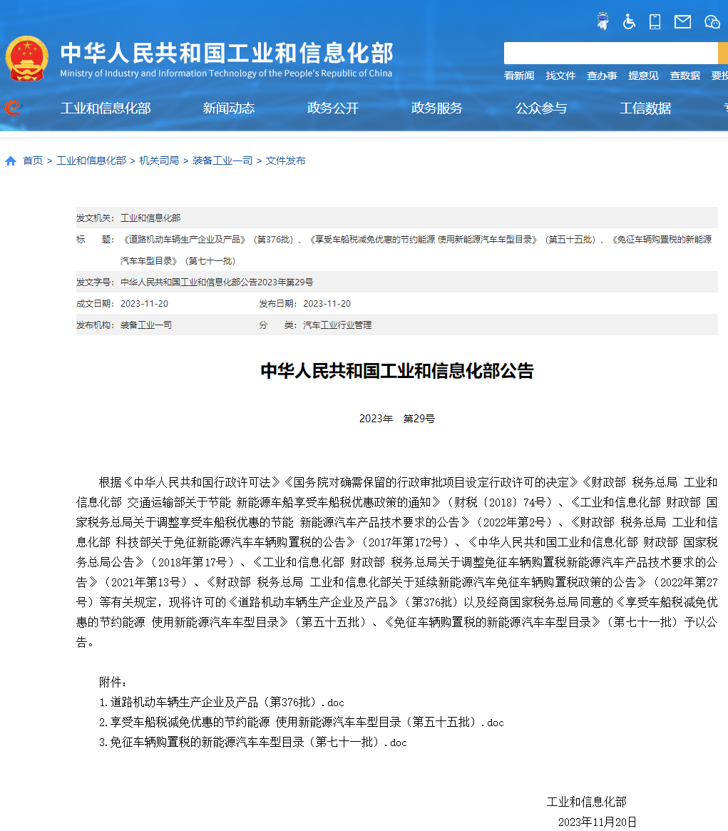 近日,工信部公布了《免征车辆购置税的新能源汽车车型目录》(第七十一批),包括61款纯电动乘用车、6款插电式混合动力乘用车、26款纯电动客车等。