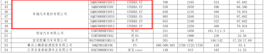 其中,奇瑞星途星纪元多款车型,以及瑶光C-DM、eQ1、eQ7等型号都榜上有名。