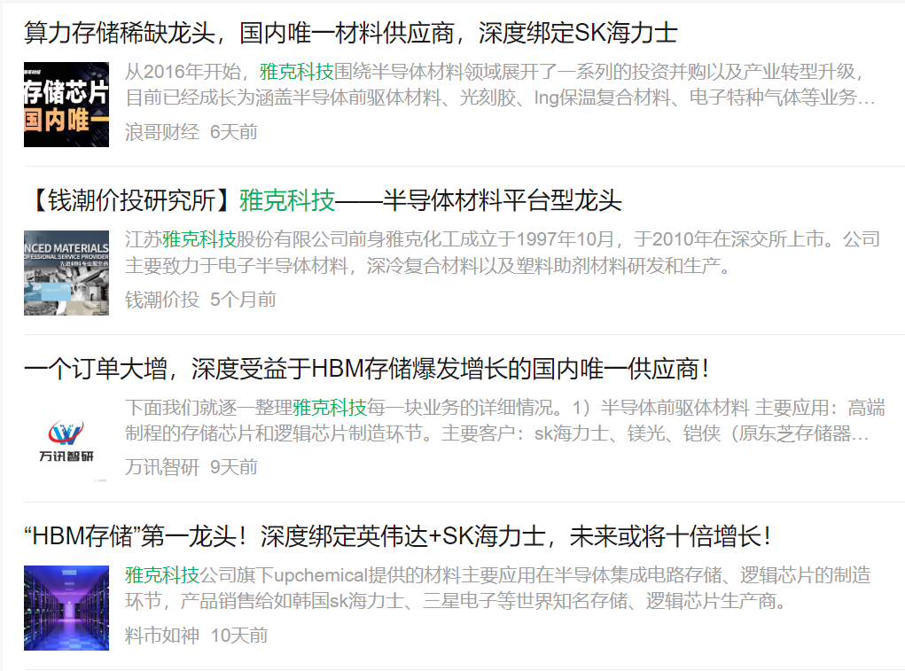 多家券商研报称,UP Chemical是韩国存储芯片龙头SK海力士核心供应商,供应海力士HBM前驱体。国盛证券研报表示,随着HBM堆叠DRAM裸片数量逐步增长到8层、12层,HBM对DRAM材料用量将呈倍数级增长。同时,前驱体单位价值量也将呈倍数级增长,前驱体有望迎来崭新发展机遇。