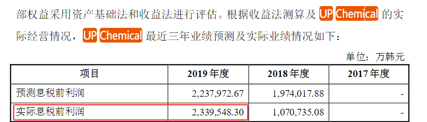 界面新闻发现,2019年UP Chemical息税前净利润为233.95亿韩元(按照当前汇率算,折合人民币1.29亿元)。2019年作为母公司,雅克科技息税前利润近3.72亿元。2019年UP Chemical 息税前净利润占上市公司的比重达34.67%。