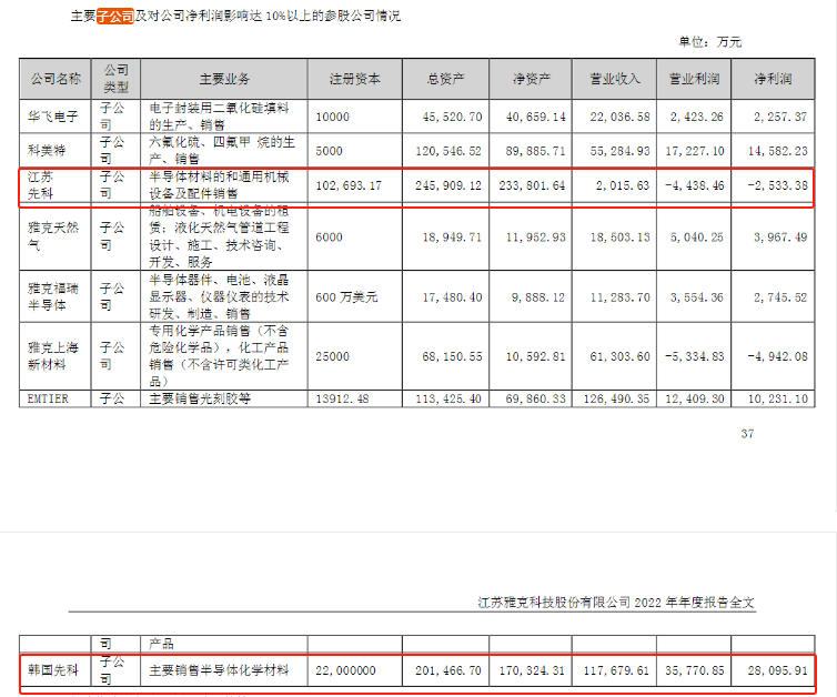 界面新闻发现,2022年,韩国先科营收达11.77亿元,净利润达2.81亿元;同期上市公司2022年营收达42.59亿元,净利润达5.24亿元。韩国先科贡献的营收占比近28%,贡献的净利润占比达53.63%。而公开研报指出,韩国先科拥有UP Chemical的100%股权。