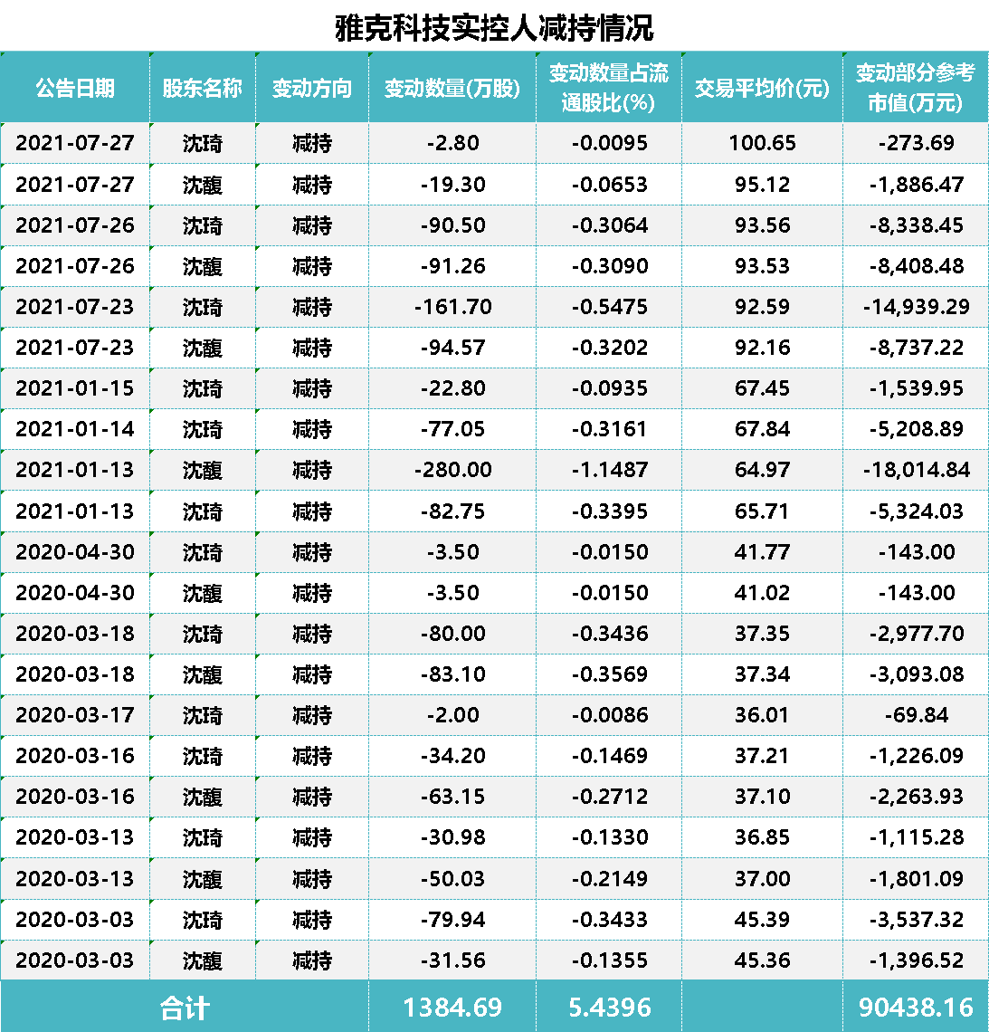 值得注意的是公司实控人已在股价高位时套现超9亿元。 公司实际控制人系沈锡强、窦靖芳、 沈琦、沈馥和骆颖一家五口,作为这一家族的长子和次子,沈琦、沈馥在2020年3月至2021年7月减持超1380万股,减持股份的参考市值高达9.04亿元。而这一期间该公司股价正值上升期。