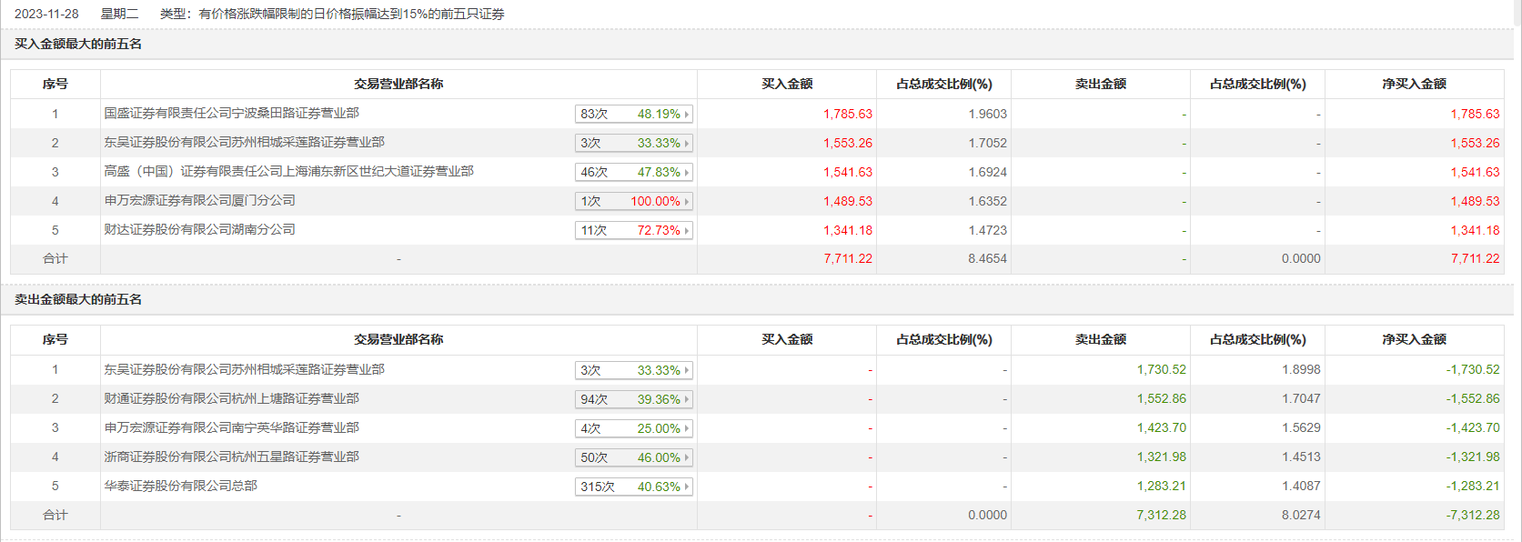 具体来看,知名游资现身龙虎榜,宁波桑田路(国盛证券宁波桑田路证券营业部)、东吴证券苏州相城采莲路证券营业部分别买入1785.63万元、1553.26万元;东吴证券苏州相城采莲路证券营业部、财通证券杭州上塘路证券营业部分别卖出1730.52万元、1552.86万元。