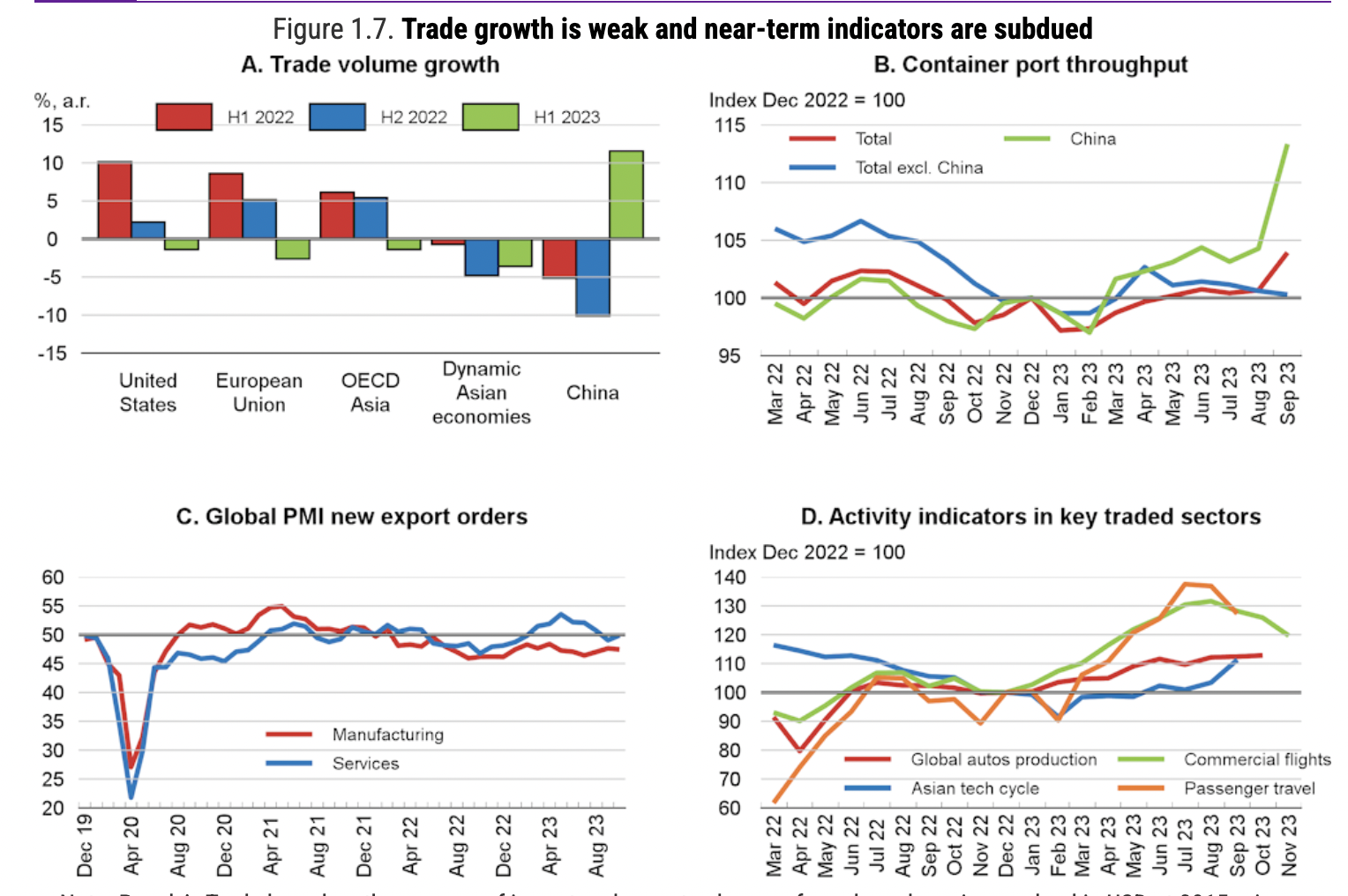 在中国方面,报告称,继去年下半年“非常疲弱”之后,中国的贸易量在今年上半年“大幅增长”。相比之下,德国、法国、西班牙和荷兰的贸易量出现萎缩。而OECD的整体增长也放缓。