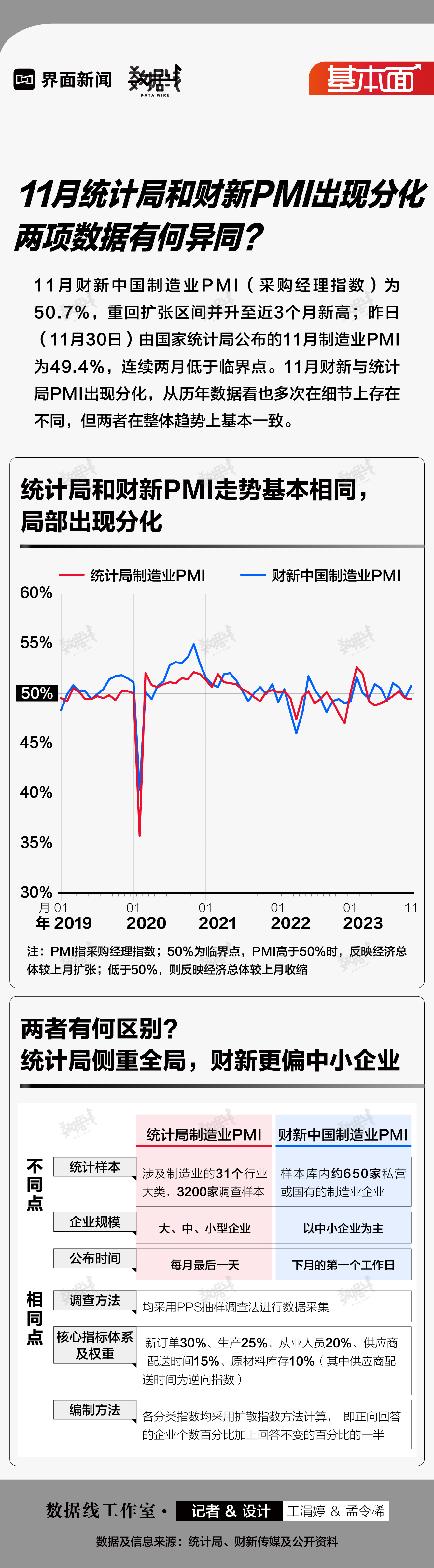 基本面 | 11月统计局和财新PMI出现分化,两项数据有何异同?