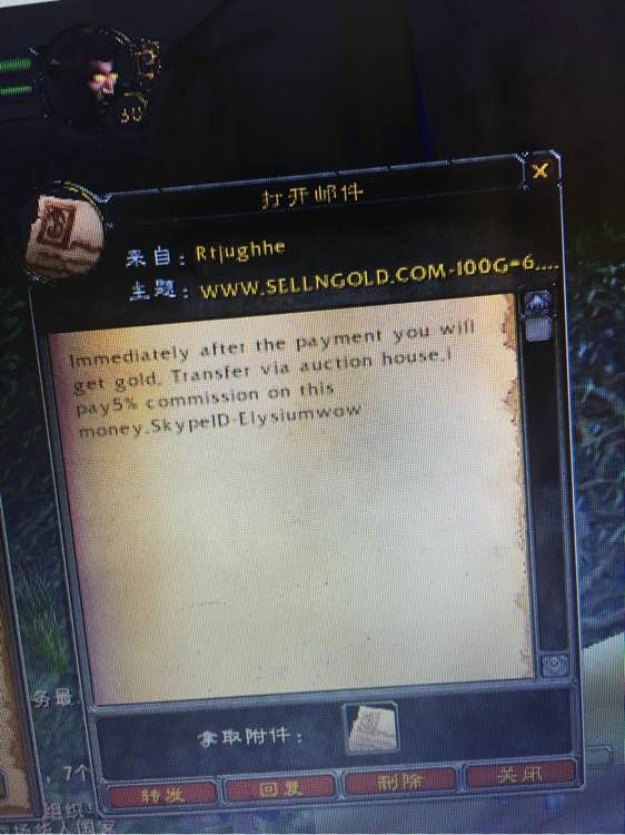 在Nostalrius服务器的中国玩家聚集地Nostalrius吧中,就有网友发布了一张广告邮件的图片。在信件中,发件人用不太熟练的英文写到:“付款之后,即可得金币”。而在帖子的回复中,网友从“购金网站”的ip地址中确定了他们来自国内。