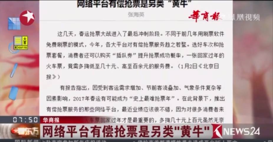 华商报则直言不讳地指出“网络平台有偿抢票是另类‘黄牛’”。