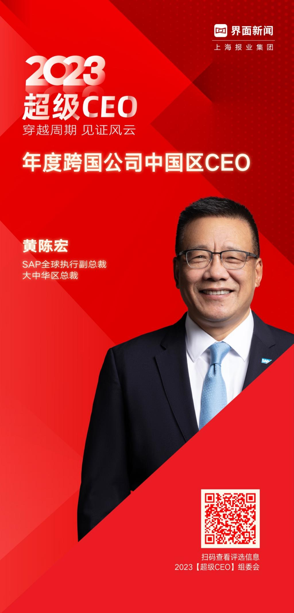 SAP全球执行副总裁、大中华区总裁黄陈宏博士登陆「界面新闻2023年度跨国公司中国区CEO榜单」。
