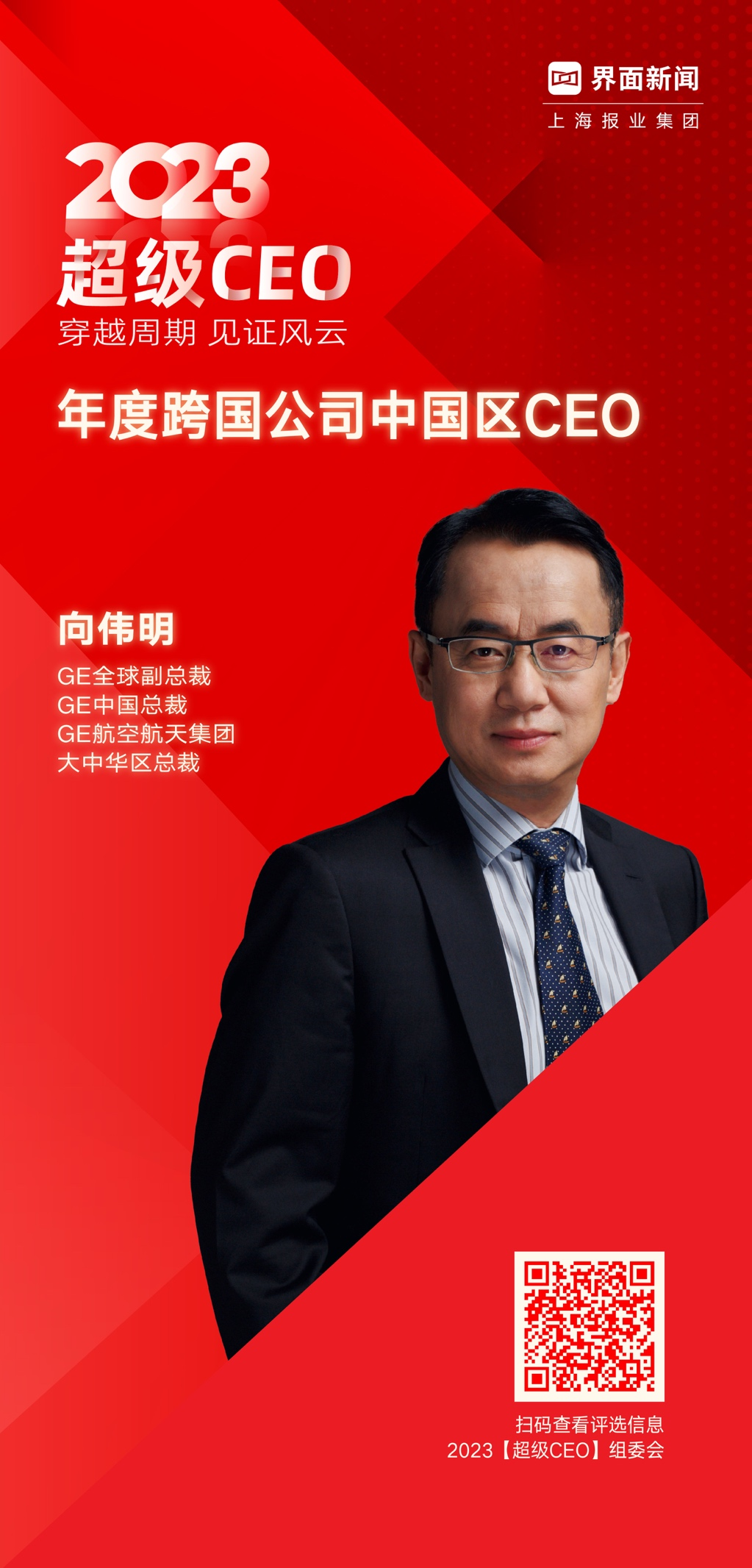 GE全球副总裁、GE中国总裁向伟明先生连续第二年登陆「界面新闻2023年度跨国公司中国区CEO榜单」。