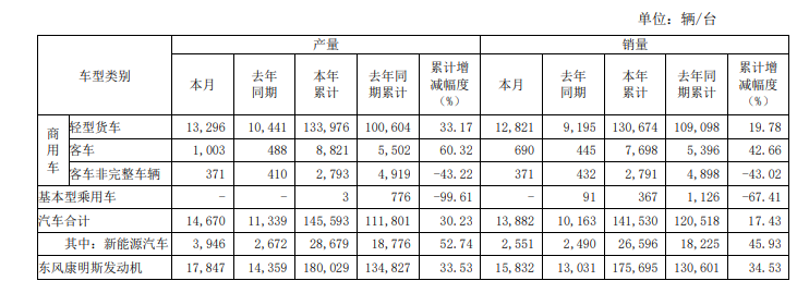东风汽车:前11月汽车销量14.15万辆,同比增长17.43%