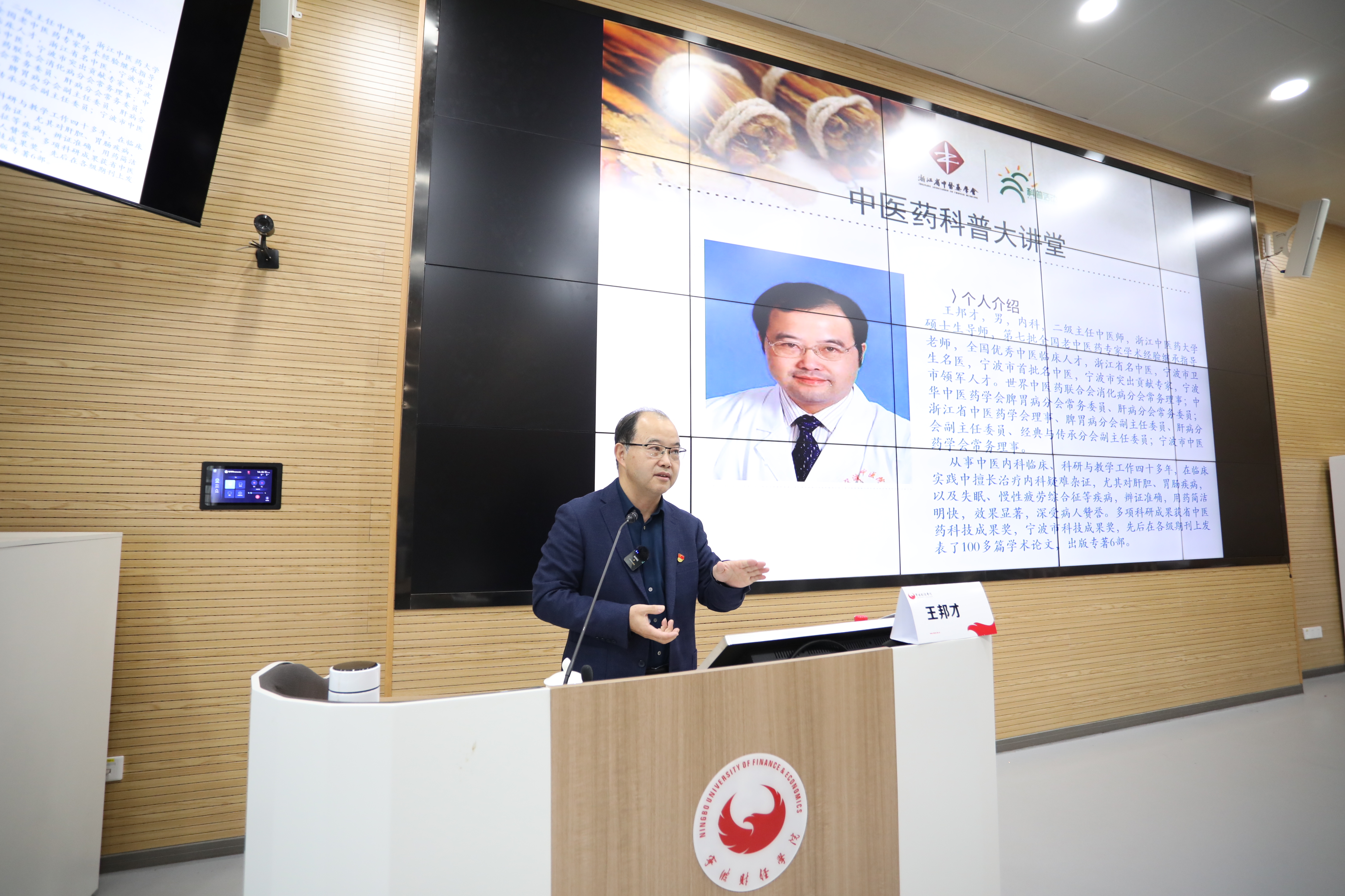 昨日,“中医药文化走进大学校园”大思政课创新学习活动在宁波财经学院举行,浙江省名中医、宁波市卫生名医、宁波市首批名中医王邦才教授走进思政课堂,同师生们面对面交流中医药文化。