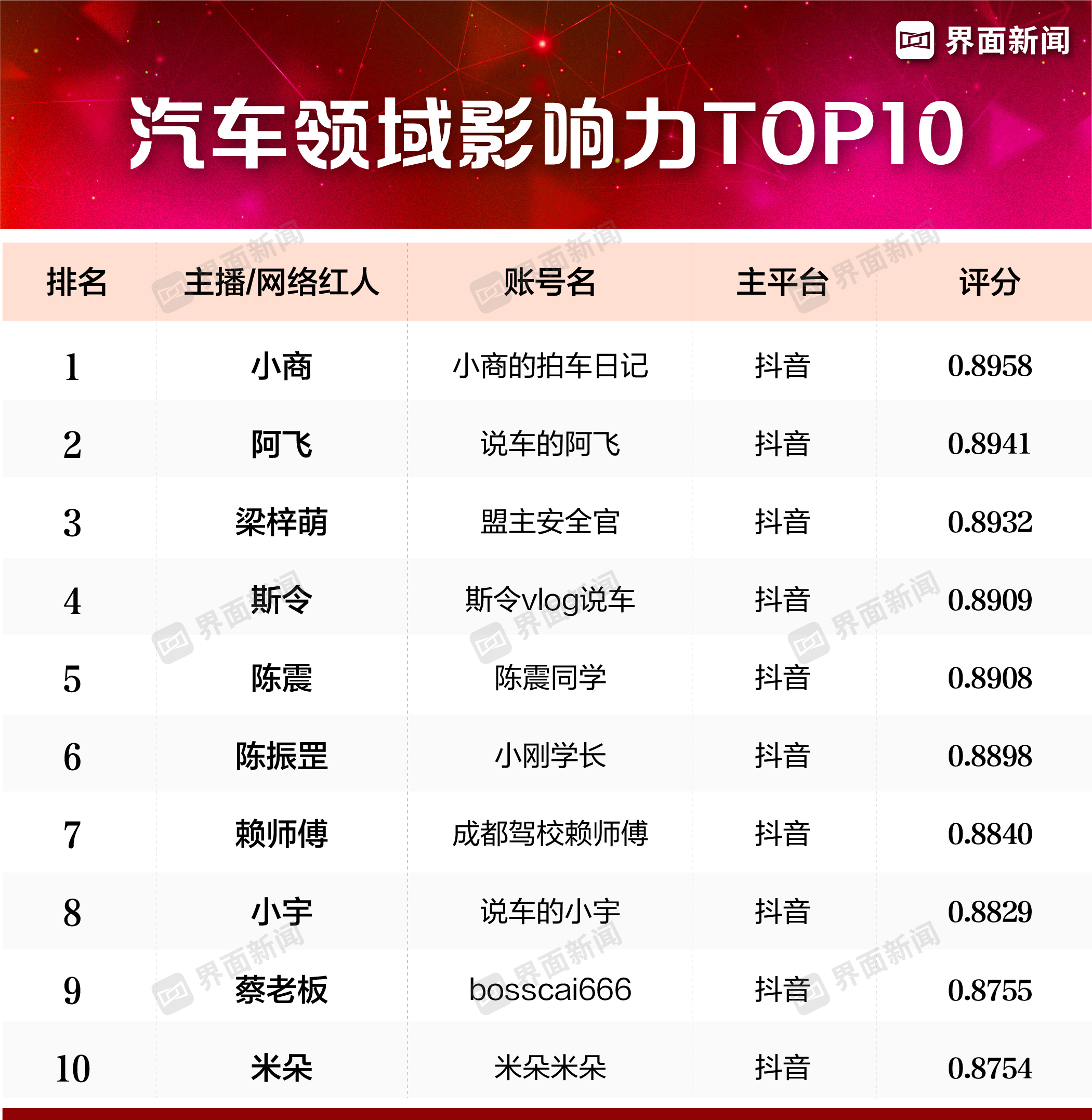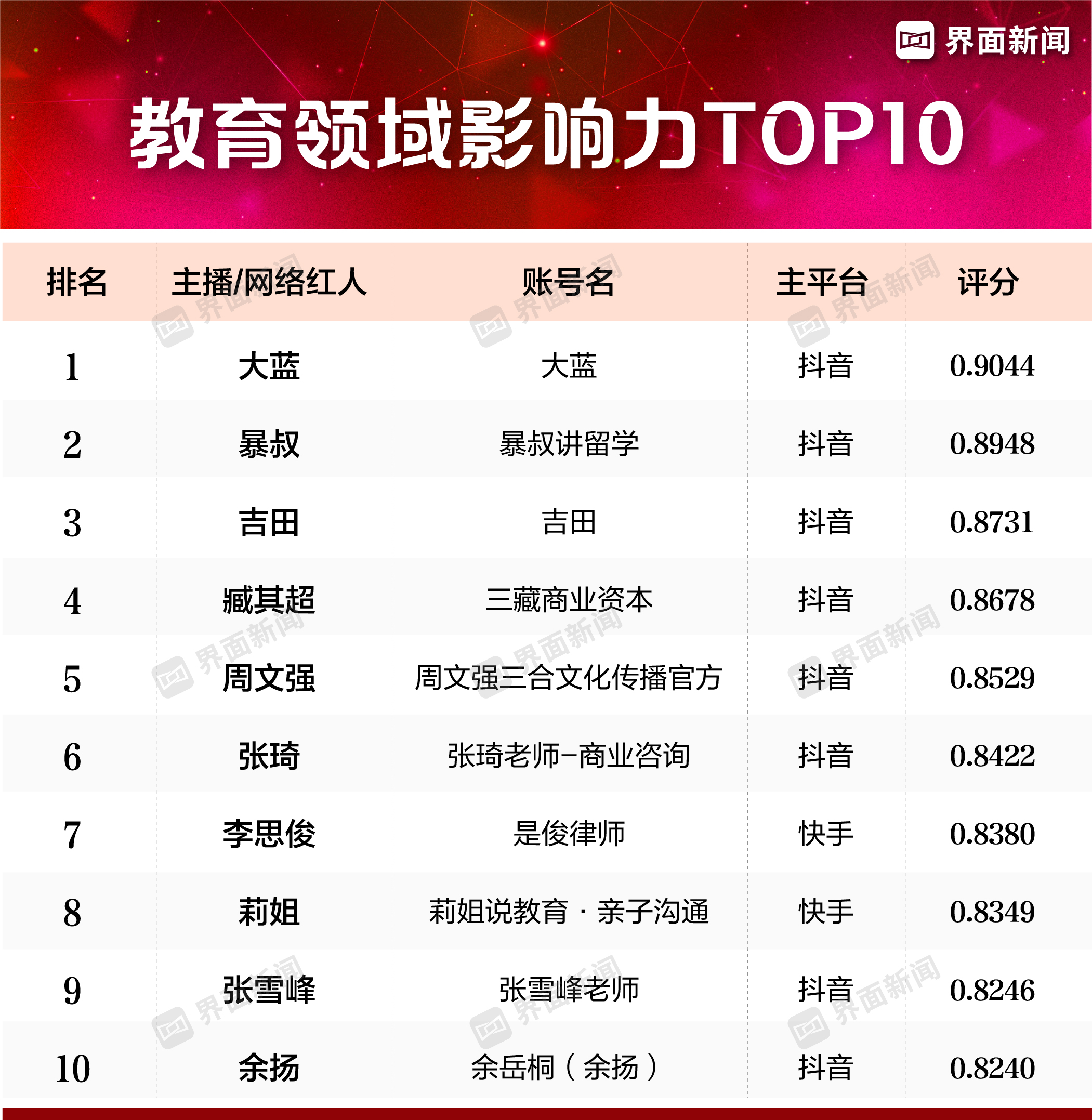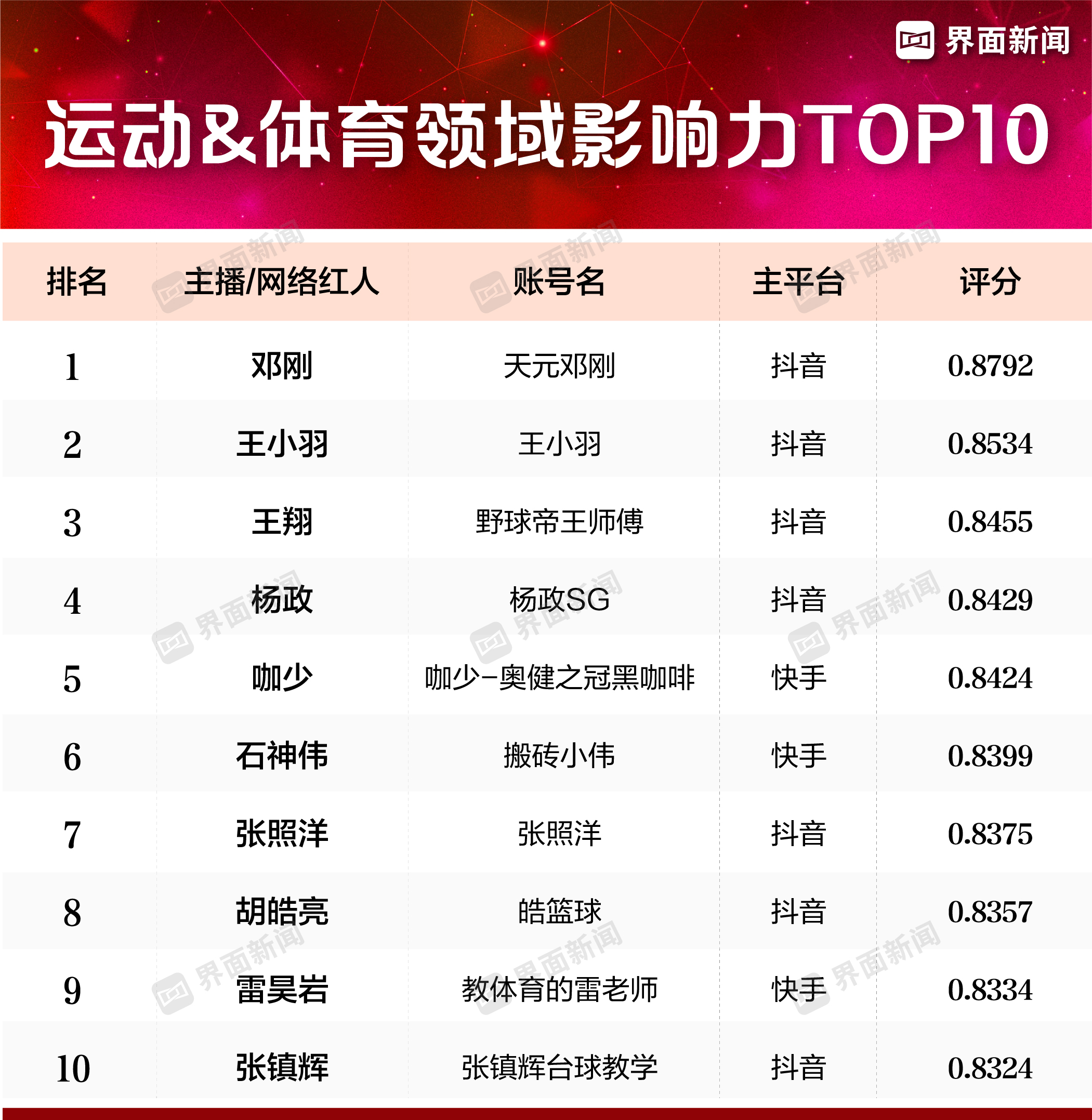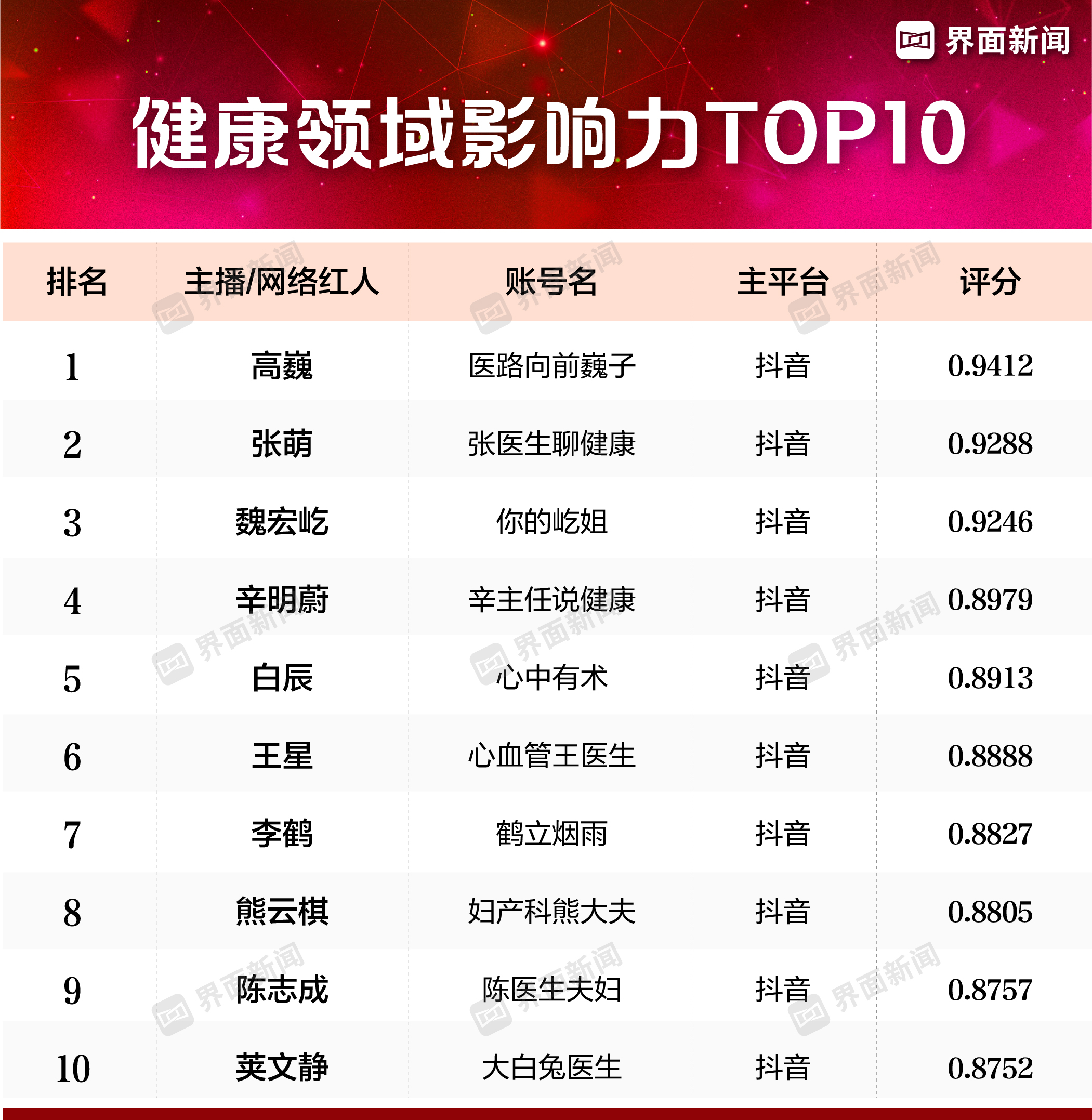 界面新闻2023年度影响力红主播榜单,关注各平台上持续输出优质内容输出、且存在巨大影响力的主播/网络红人。该评选旨在发现主播/网络红人影响力趋势,助力短视频行业健康发展。界面新闻2023年度影响力红主播榜单评选覆盖抖音、快手、视频号、小红书、哔哩哔哩等平台。界面新闻通过桌面调研、媒体推荐、专家审议等环节编制本榜单。