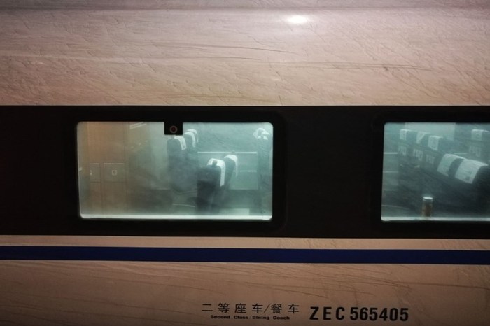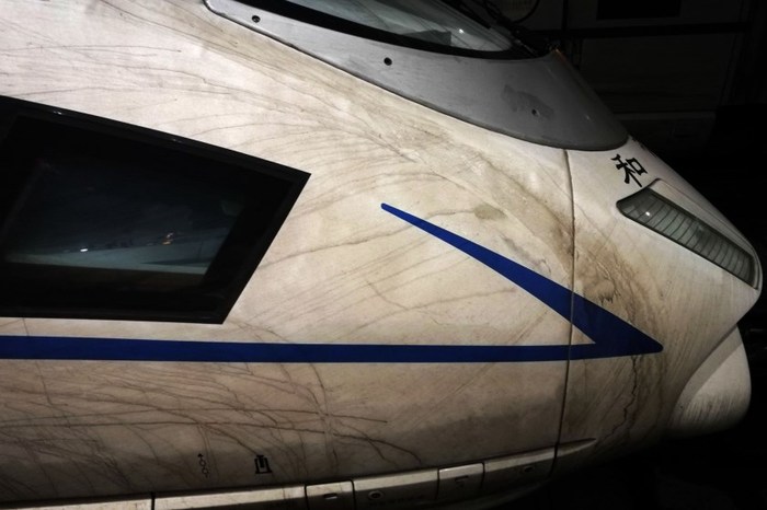 4. 实拍穿越雾霾区的高铁 尘埃布满整个车身。