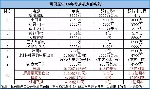 近日,公众号中国电影产业发布了2016年中国电影的盈利榜单可能看得投资人很眼馋,那也是那么多资金想进入电影业的原因。当然,有人风光也有人凄惨,看过今年中国电影的亏损状况后,你或许能体会到这其中残酷的一面。