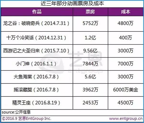 同样亏损的还有另一部据说成本7000万的《小门神》,该片是原土豆网CEO王微做的3D动画,耗时三年,上映后票房只有7869万,净亏4000万。以及成本4500万,票房2453万的《精灵王座》,净亏3900万。出品《精灵王座》的就是曾4800万高成本制作《龙之谷》的上海米粒影业,那部片虽然口碑不错,但也是亏。