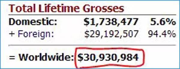 北美票房也是差的出奇,只有不到174万美元。海外已经在中国两岸三地、新加坡、马来西亚、菲律宾、墨西哥、丹麦、挪威等地上映,票房2919万美元(其中中国内地1.63亿元,相对其口碑来说,也不算理想)。全球合计3093万美元。