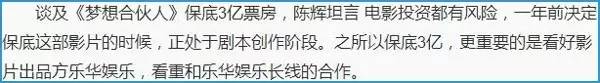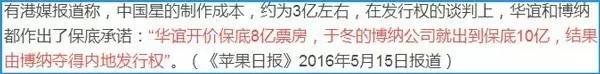 但这部电影是福建恒业花了3亿保底的,包括春秋时代、乐华娱乐在内的前期投资方并没有亏,亏的是对赌的恒业。一般来说,在保底票房以下,对赌方承担所有的损失。