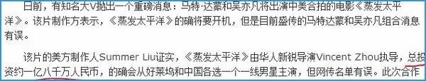 今年有一部国产科幻片《蒸发太平洋》,本来计划做成国际合拍,传言投资1.8亿,要邀请好莱坞和国内一线男星主演。