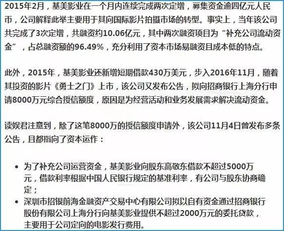 就在做这些电影的过程中,已在新三板上市的基美影业不断传出“缺钱”传闻,前后多次定增募资,以及贷款、借款。