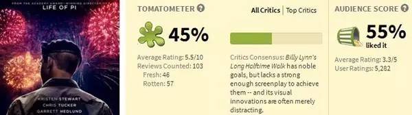 《比利-林恩》在北美评分网站IMDb和烂番茄的得分都不高
