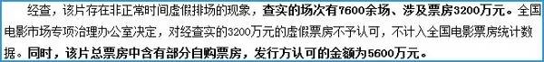 《叶问3》丑闻揭开了电影业虚假票房横行的黑幕。据有关部门调查,该片虚假排场(锁定座位、幽灵场等)涉及票房3200万,自购票房发行方认可的金额为5600万,20家院线(全国总共就37家主流院线)的73家影院严重参与了造假事件,被警告的还有三家电商。