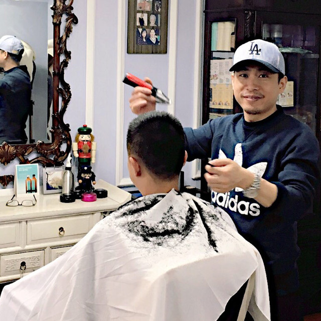 最关键的是找不到肯给我剪头发的人,所有认识的不认识的人我都死皮赖脸地去求他们。第一个头我记得很清楚,是我老板的一个舅舅,人长得憨憨厚厚,正好过来玩,对我也蛮有好感,所以他说那你在我头上练吧,随便你怎么弄,剪坏了也不要紧。我上手的时候,老板站在旁边做指导,我一边手忙脚乱,一边拼命记住他说的话。