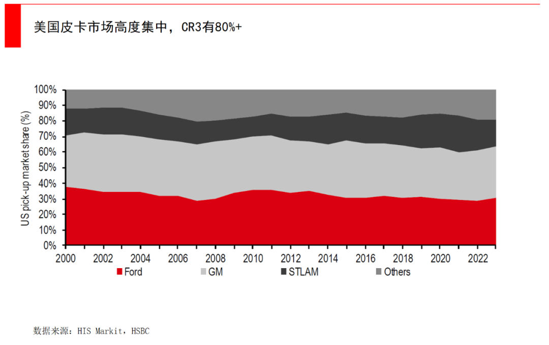不过皮卡这个细分市场集中度很高,长期以来一直由底特律三巨头(D3,福特、通用汽车、斯特兰蒂斯)主导,这三家占据了80%多的美国市场份额。而行业的第四名丰田,占据了10%-12%的市场份额。这四家强有力的竞争对手,似乎令新进入者举步维艰。