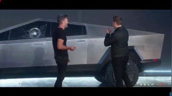 Cybertruck也不是没有翻车过。在2019年的发布会上,特斯拉首席设计师弗朗茨·冯·霍尔茨豪森(Franz von Holzhausen),拿起大号钢球,大力扔向了Cybertruck实车车窗,结果前门玻璃直接在全球观众的眼前碎了。