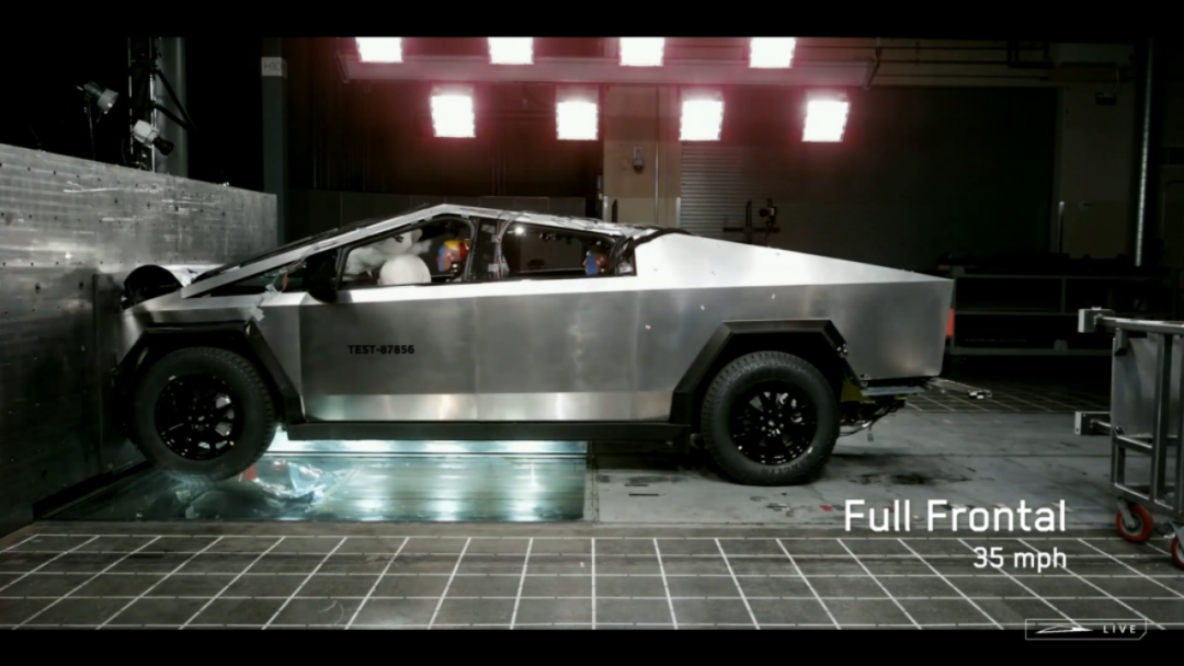 除此之外,在16英里的侧翻测试、35英里的正面撞击测试、38英里的侧面碰撞测试中, Cybertruck表现仍然坚挺,都无法破坏或者打翻30X不锈钢的车身。