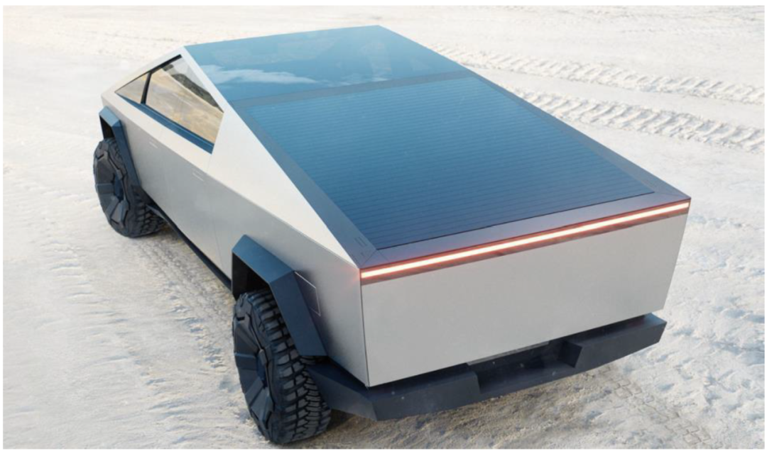 Cybertruck的车载太阳板是选配的,Cybertruck也是特斯拉首款具有太阳能选装配件的车型。