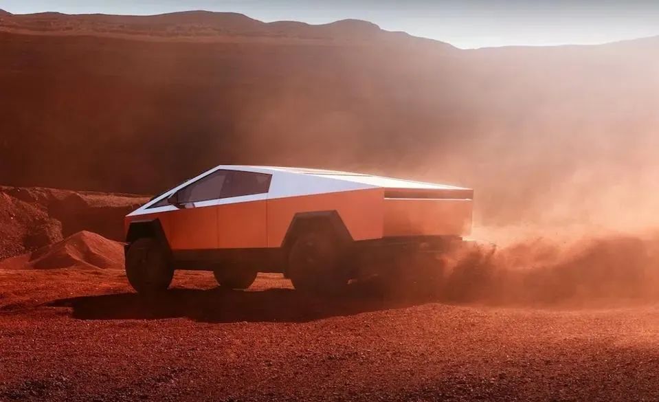 如果换上35英寸的全地形轮胎,Cybertruck“可以行驶在任何星球表面”,Cybertruck还是SpaceX登陆火星之后的“唯一指定用车”。