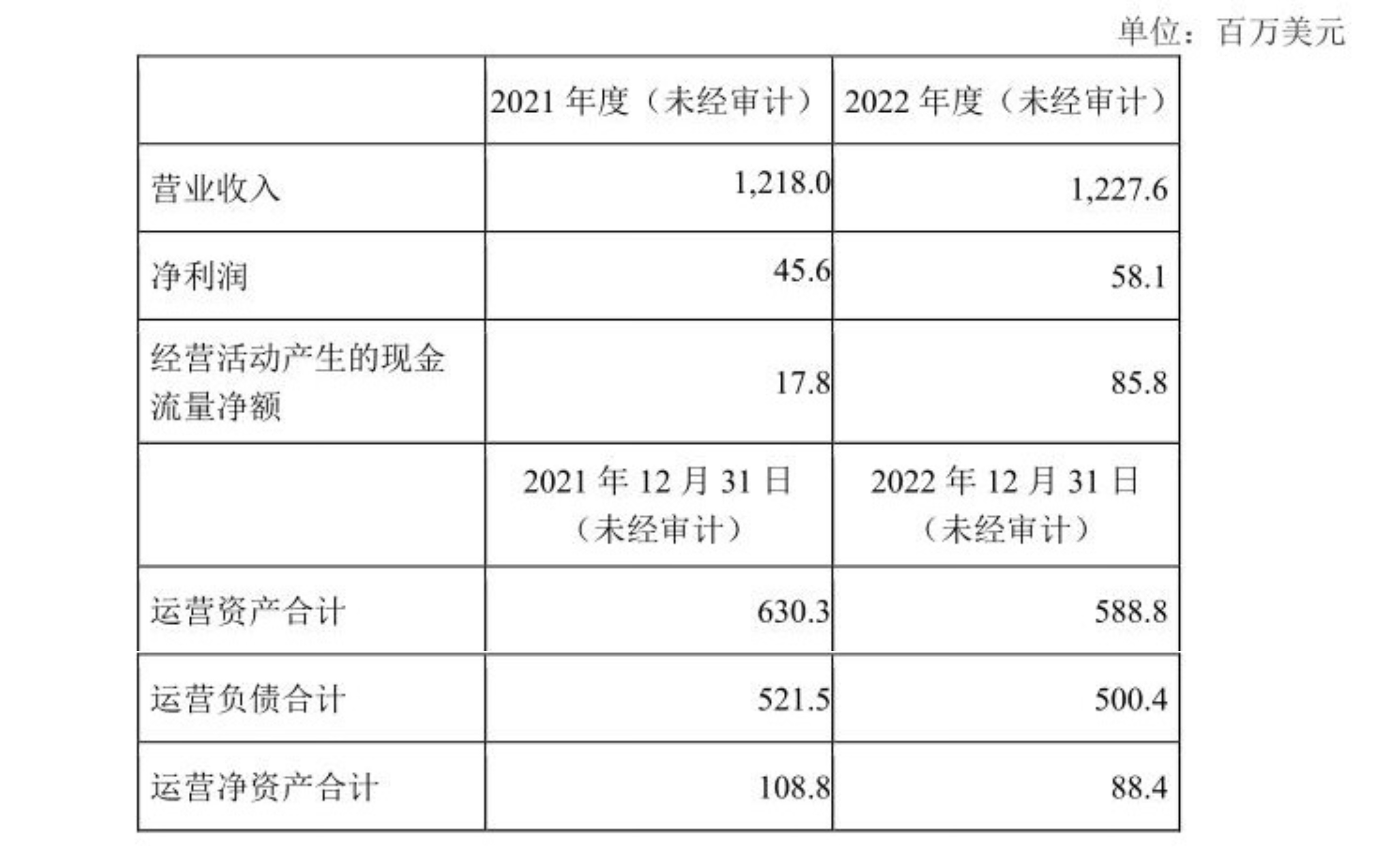 从收购标的的财务状况来看,目标公司2021年实现营收12.18亿美元、净利润4560万美元,经营活动产生的流量净额1780万美元;2022年实现营收12.28亿美元、净利润5810万美元、经营活动产生的流量净额8580万美元(未经审计)。