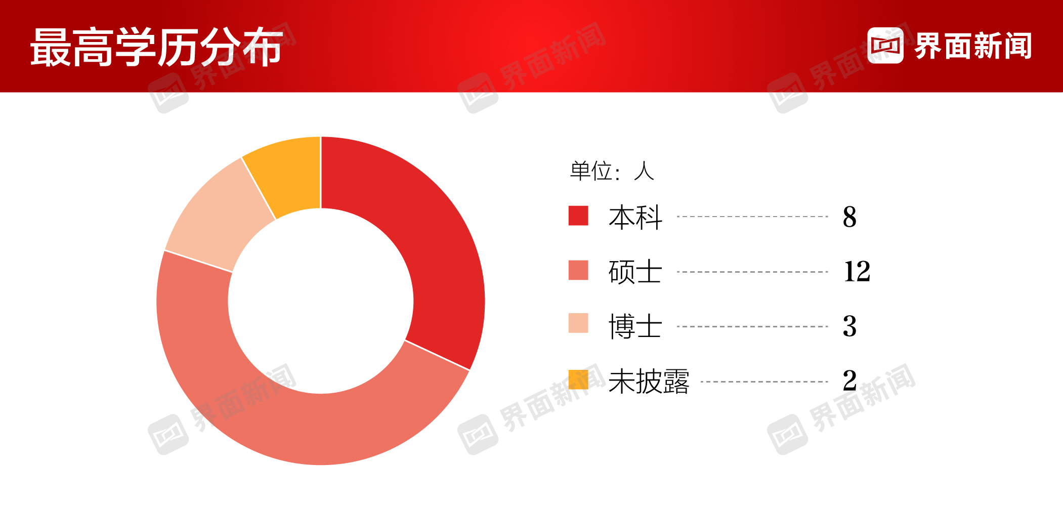 在25位上榜的CEO中有23位公开了自己的学历,硕士和博士分别有12位和3位,占比超过60%。
