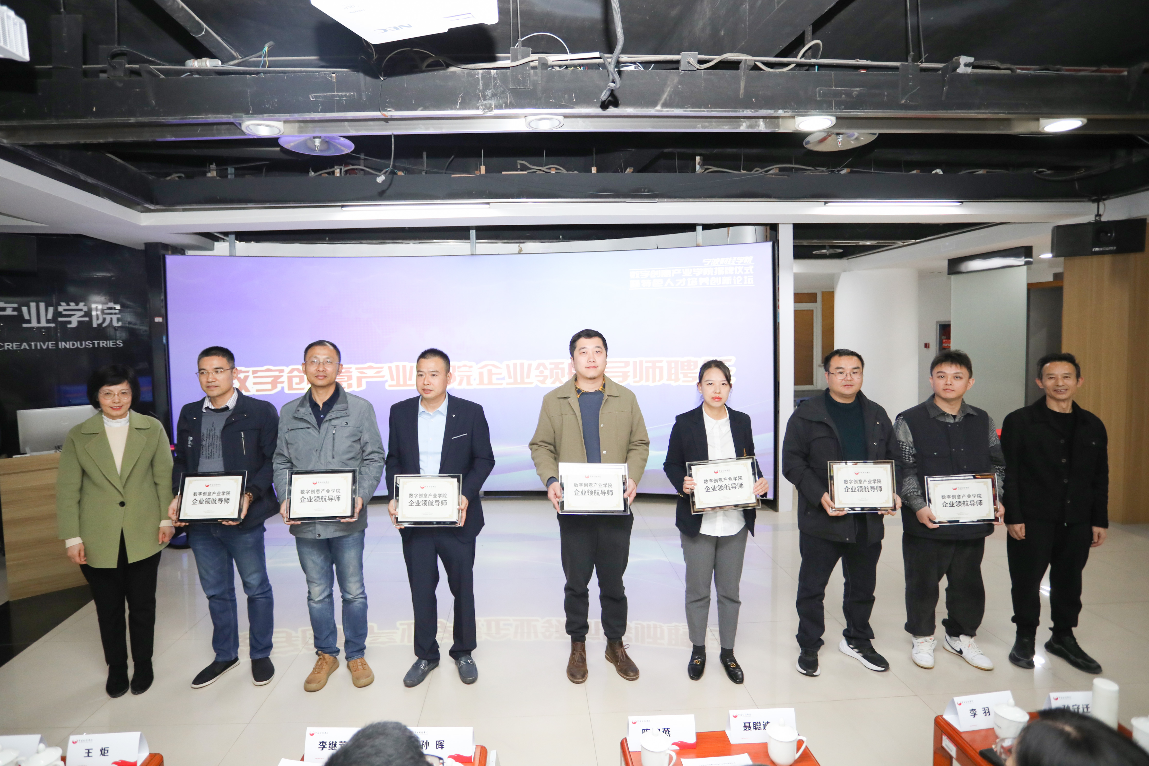 揭牌仪式上,该校与相关企业签订了合作协议,并聘请了4位企业高管成为数字创意产业学院的领航导师。