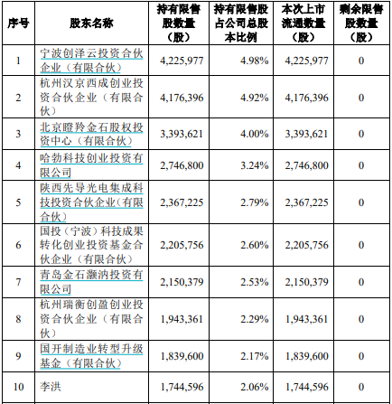 根据公司,源杰科技12月21日有4,078.42万股限售股上市流通,占总股本比例48.07%,是解禁前流通盘的超过2倍,解禁市值66.58亿元。