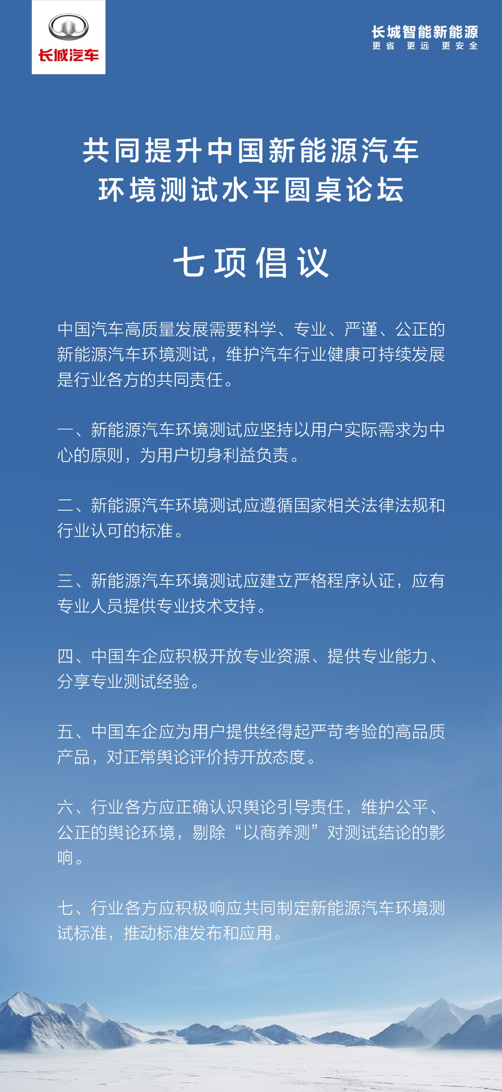 也正是基于此,作为在中国汽车行业拥有三十三年丰富经验的自主品牌,12月14日,长城汽车举办共同提升中国新能源汽车环境测试水平圆桌论坛,参会的包括产、学、研领域在内的多位专家学者,共同探讨中国汽车产业高质量发展之路,达成了共同提升中国新能源汽车环境测试水平的倡议。