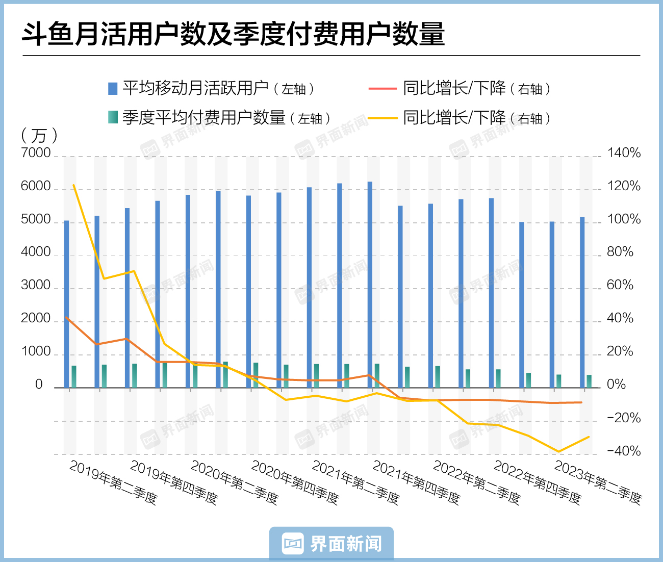 此时展开的PMO制度改革更像是,在业绩表现并不理想的前提下,斗鱼为了提升人效而不得不做的尝试。2022年一季度,斗鱼的月活用户数由去年同期的5910万降至5510万,季度平均付费用户数也由去年同期的700万降至640万。