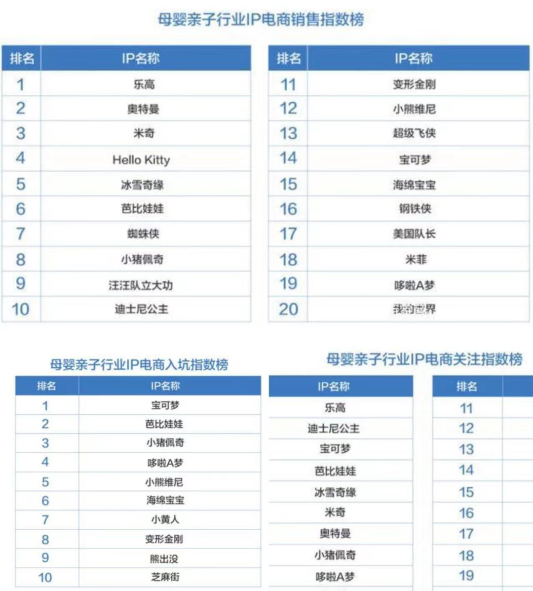 数据来自:《2020中国市场IP电商指数报告-母婴亲子篇》