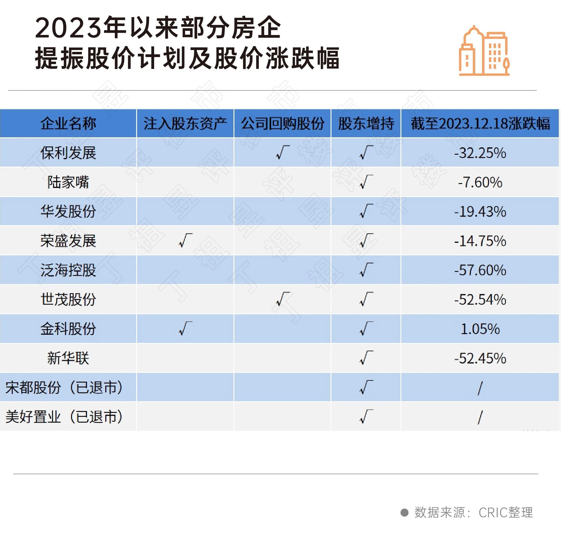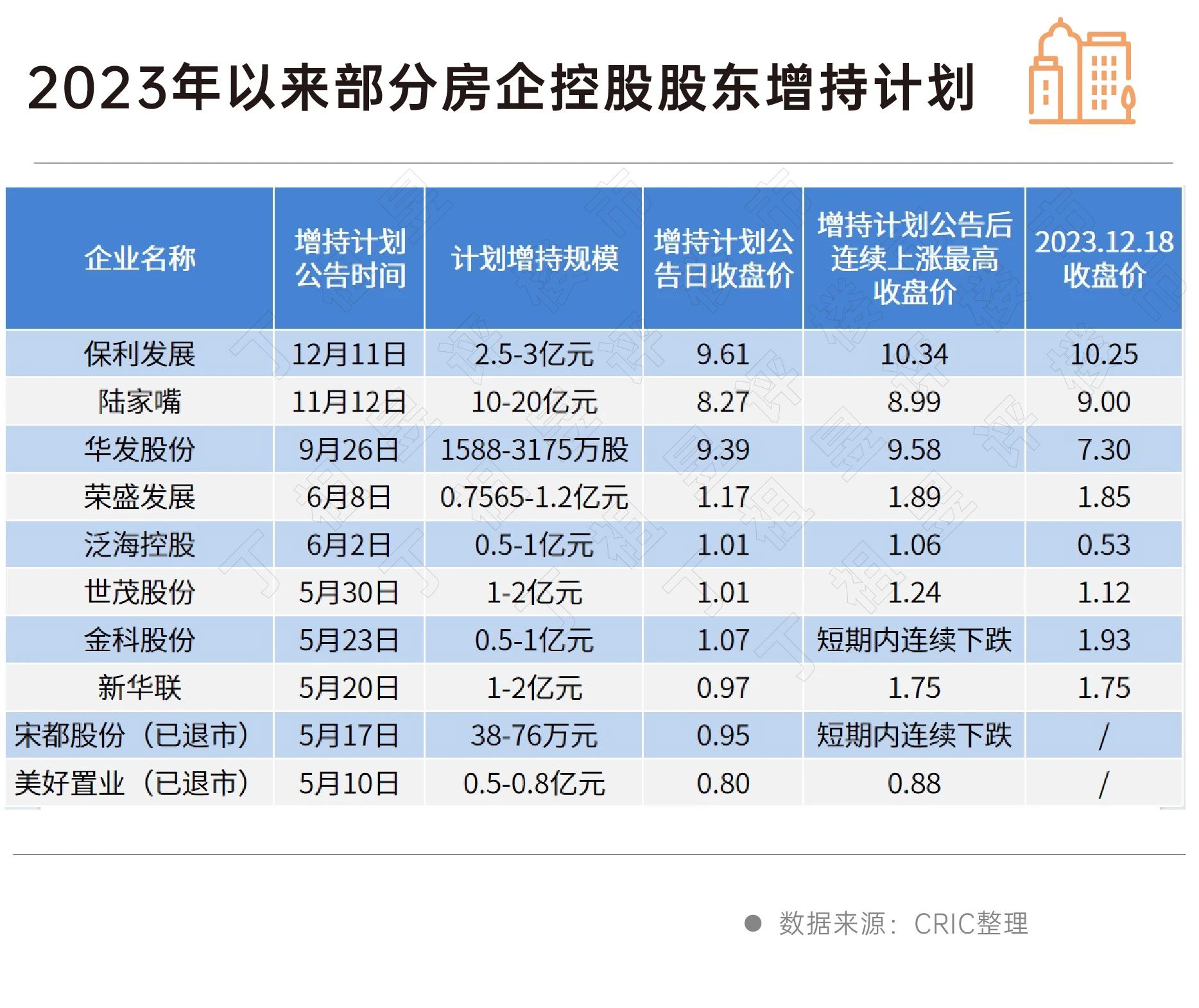 在保利发展宣布实控人增持与公司回购股票之前,陆家嘴、华发股份等9家A股房企也早早宣布了提振股价计划。