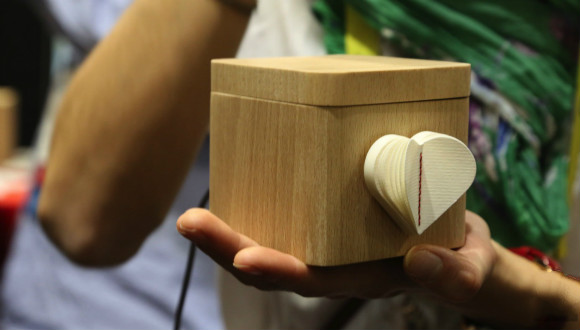 这款看上去有些特别的小盒子是一家法国的初创公司设计的。只要将手机通过应用程序与盒子进行配对,即可在任何地方发送消息给盒子。盒子通过wifi接收到讯息后,外壳上的心状物体即可左右扭动,以提醒接收者查看消息。