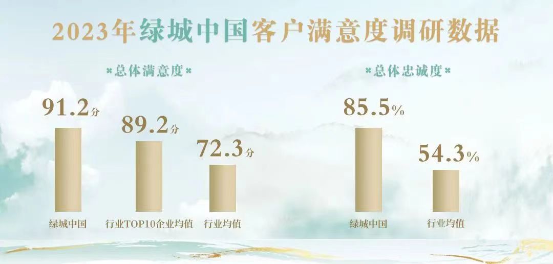 中指研究院《2023中国房地产顾客满意度调查报告》显示,绿城中国总体满意度得分91.2,在所进驻的16座城市拿下总体满意度第一;总体忠诚度得分85.5%,在所进驻的7座城市拿下总体忠诚度第一,其中西安、乌鲁木齐继2022年后再次登榜满意度调研第一。2023年10月,绿城入选西安市第一批“诚信房地产开发企业”名单……