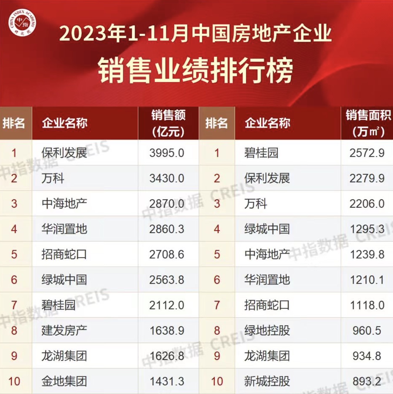 2023年1—11月,绿城累计实现全国总合同销售额约2563.8亿元(含代建),位列中指研究院销售榜第6位;总合同销售面积约1295.3万平方米,位列中指研究院销售榜第4位;据评测机构亿翰智库统计,2023年1-9月中国典型代建企业新签规模中绿城管理位列第一;2023年绿城以145.6亿元、76.5万㎡业绩斩获1-11月西安房地产企业销售业绩排行榜TOP2。