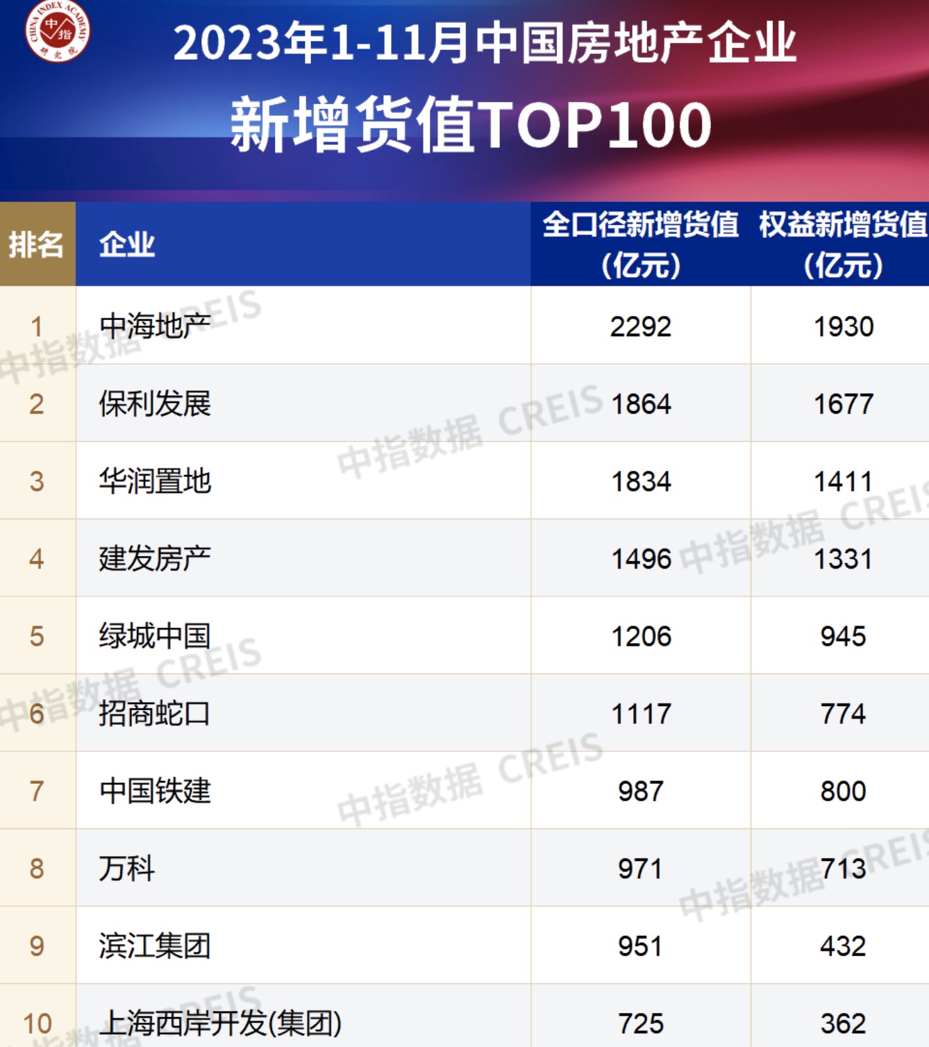 放眼全国范围,绿城中国销量稳居第六!《2023年1-11月全国房地产企业拿地TOP100排行榜》中,绿城的拿地金额达539亿元,拿地面积达253万平方米,绿城的新增货值已达1206亿元,超过2022年的1037亿元!