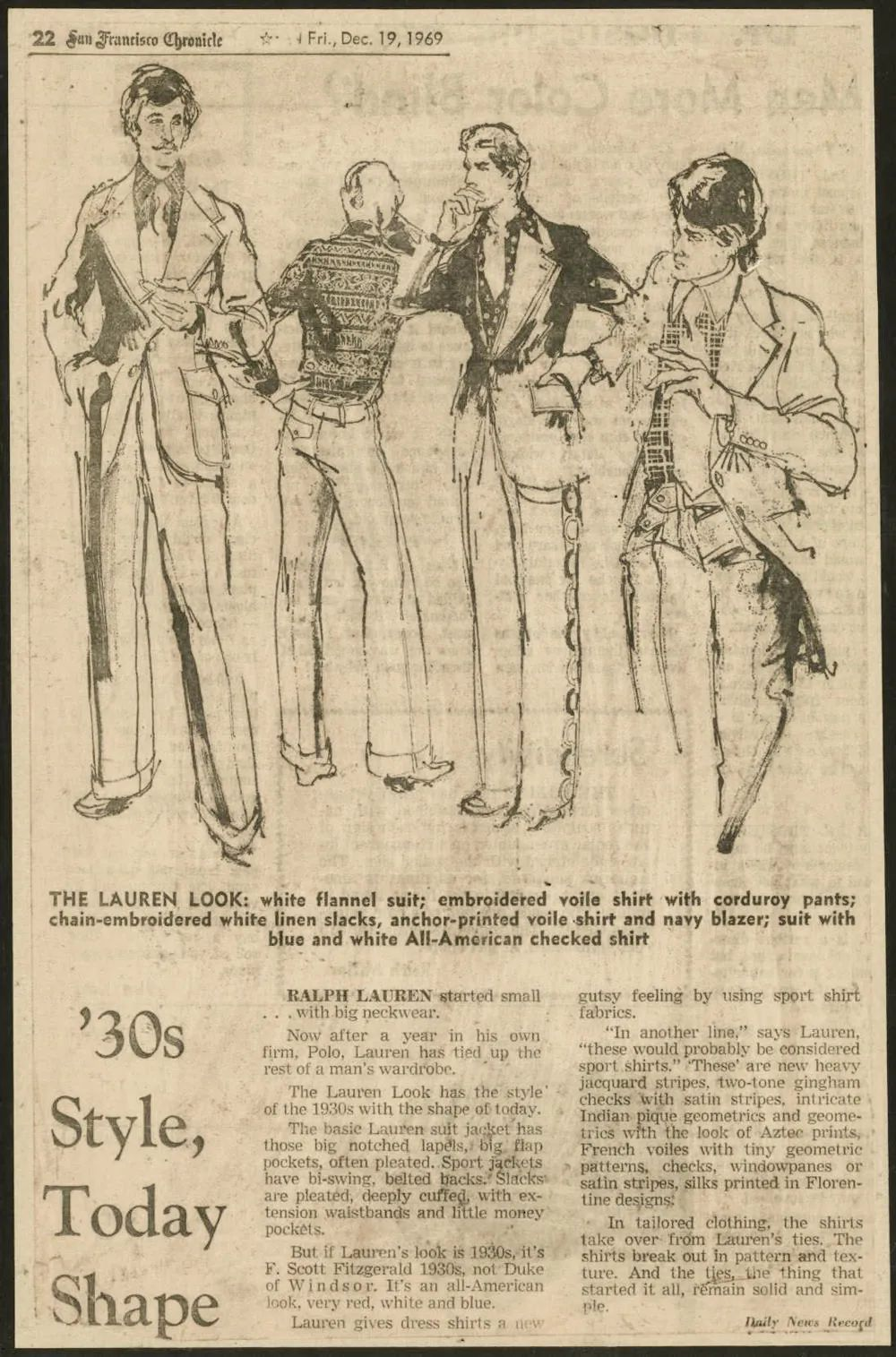 1969年《旧金山纪事报》关于Ralph Lauren的报道:30s Style,Toady Shape