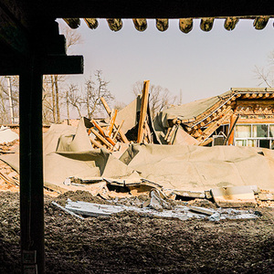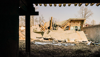 24日,地震后第六日,搜救工作还未结束,也有村民回到家中试图找回自己的财物。金田村与草滩村仍埋在厚厚的砂涌之下。