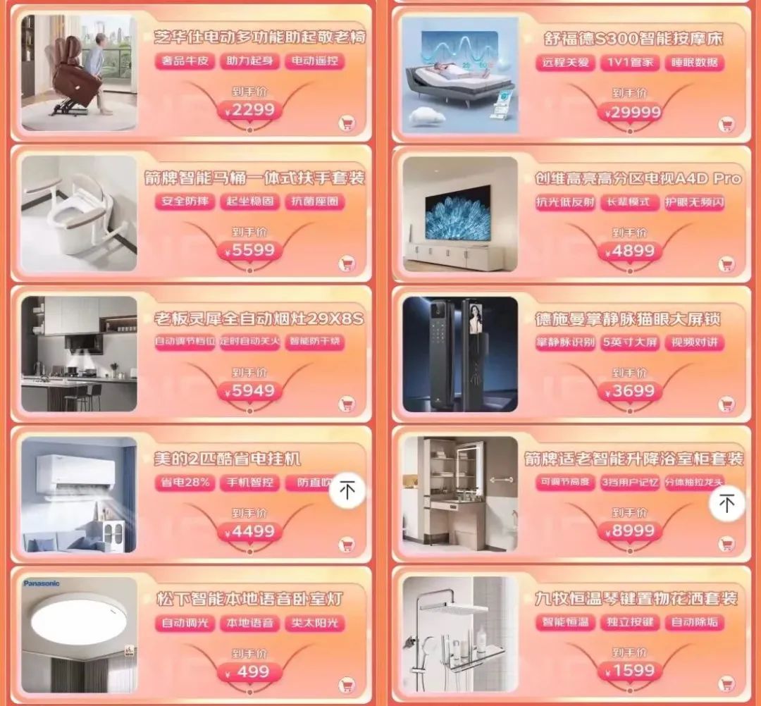 在适老家电品类,,京东针对老年人在日常起居、沐浴、烹饪等场景下的痛点,首发融合最新智能科技的适老新品,包括创维高亮高分区电视、美的2匹酷省电挂机、老板灵犀全自动烟灶套装、芝华仕电动助力敬老椅等。