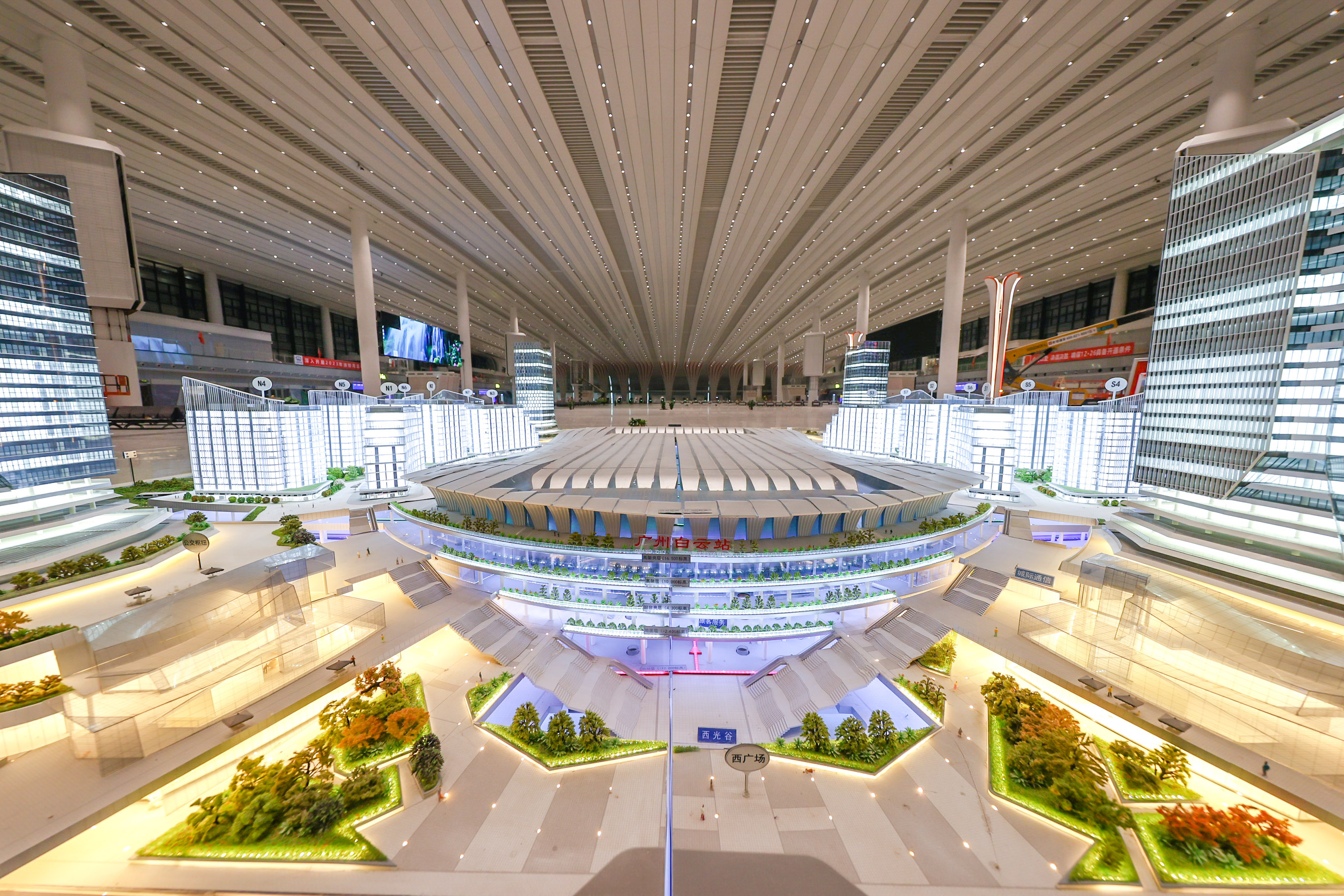 值得一提的是,广州白云站不是单一功能的交通枢纽,广州白云站是国内首次在铁路站台上方大规模“造地”的站房。“造地”总面积约6.8万平方米,南北14栋高层塔楼对称布局,与四角四栋超高层上盖塔楼“四大金刚”相辅相成,功能上涵盖办公、商业、酒店等多种形态。