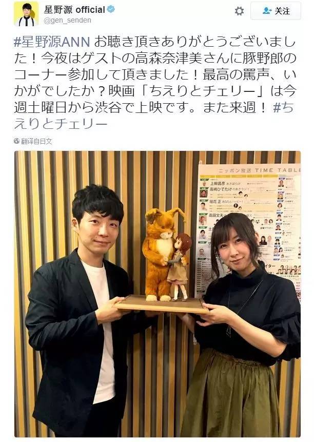 不过各位非洲P们也不要看到星野源没出SSR,就认为大家都是一家人。因为早在去年七月份时,星野源就曾和米库的声优高森奈津美有过一次节目合作。对于大多数CGSS的玩家来说,与声优合作的机会或许比一张SSR要更加珍贵吧。